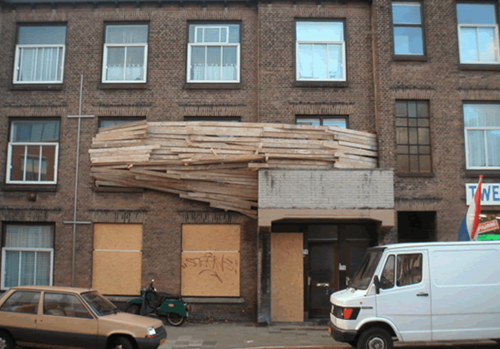 This installation was commissioned by Eternal Network, an association in Tours that has been organizing contemporary art projects in public spaces since 1999. For the SAISON 10 exhibition, marking their 10th anniversary, Kawamata’s intervention involved surrounding with wooden planks one of the four former octroi pavilions in Place Choiseul: the octroi nord-est, which has been converted into the association’s headquarters.