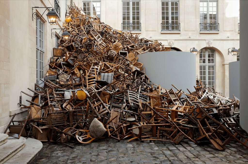 For this exhibition at the renowned interior design studio Liaigre, at its Rue du Faubourg Saint-Honoré location in Paris, Kawamata created an indoor and outdoor installation on the building’s façade, using old pieces of furniture.