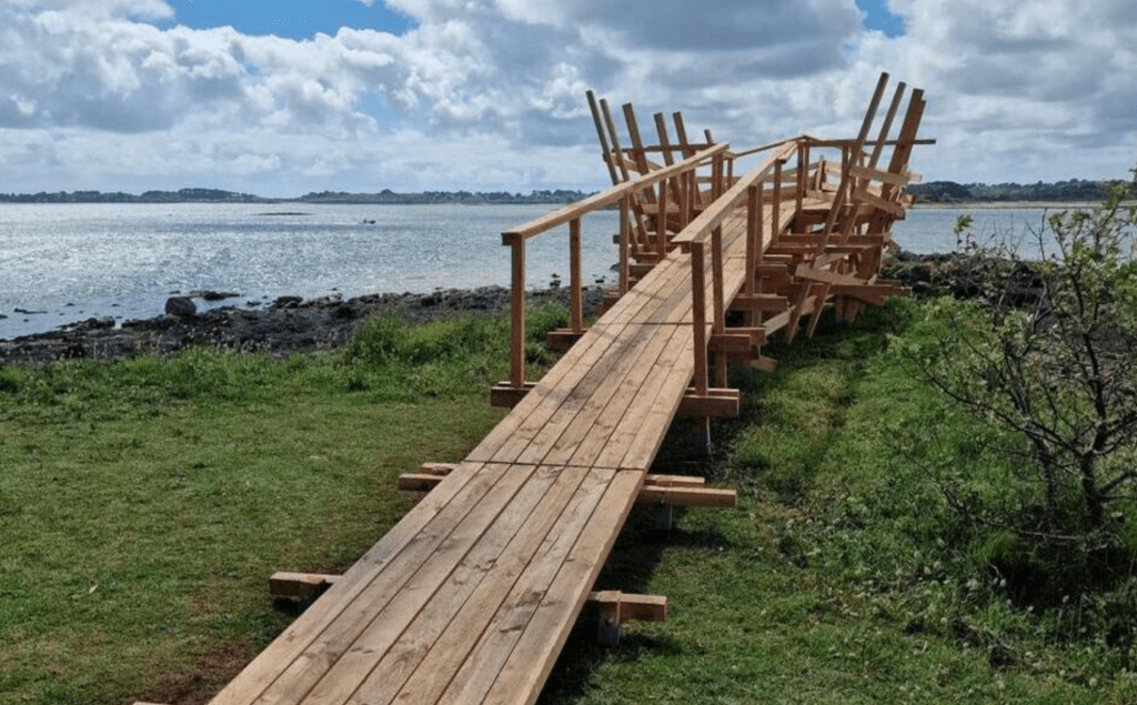 The work brings together two distinct yet complementary structures: a wooden aqueduct by Wardak and a suspended waterway by Kawamata. Together, through this dialogue of forms and materials, they pay homage to ancestral craftsmanship and traditional know-how related to the transport of water, while evoking the Pont du Gard, the monumental section of a Roman aqueduct built in the 1st century.