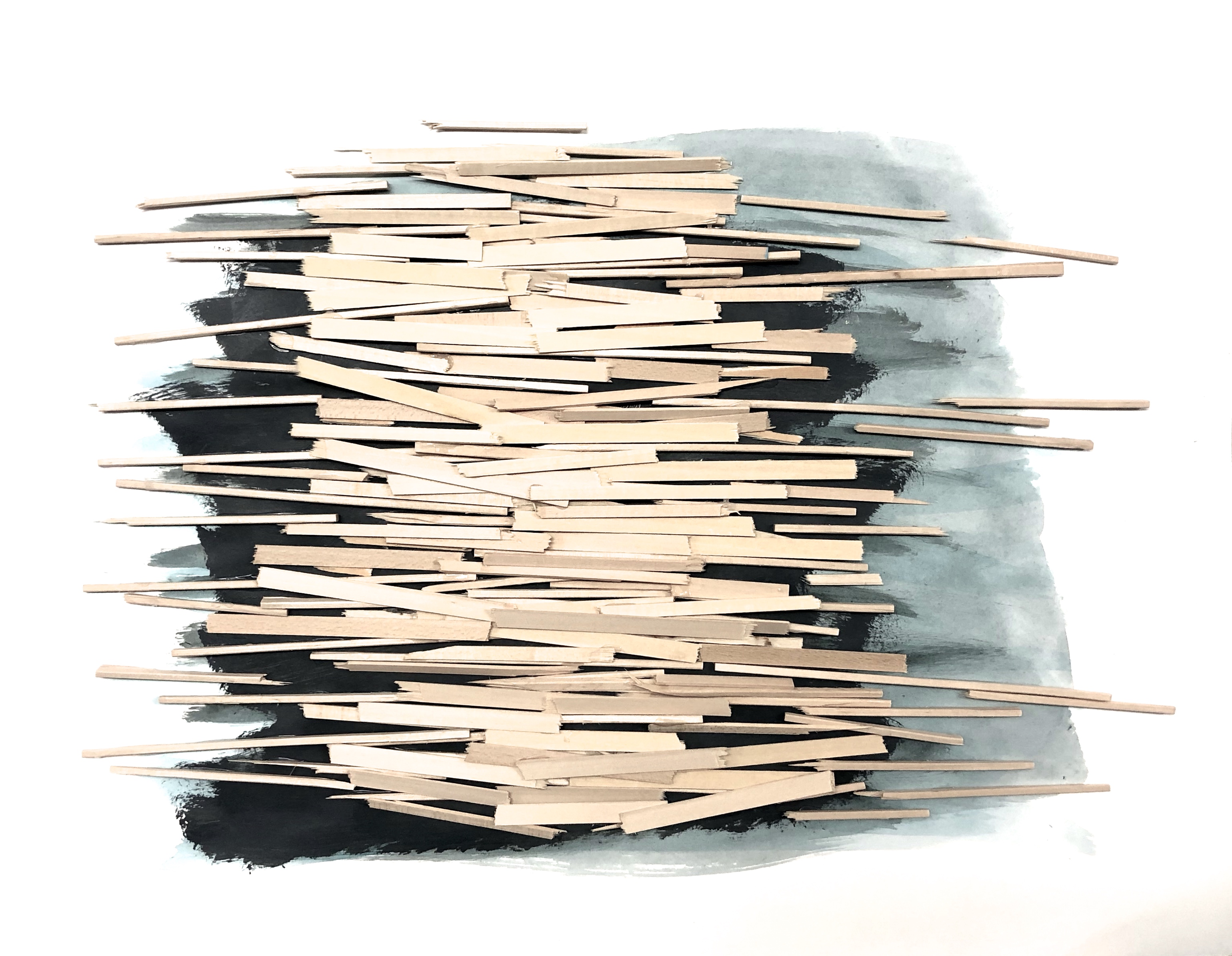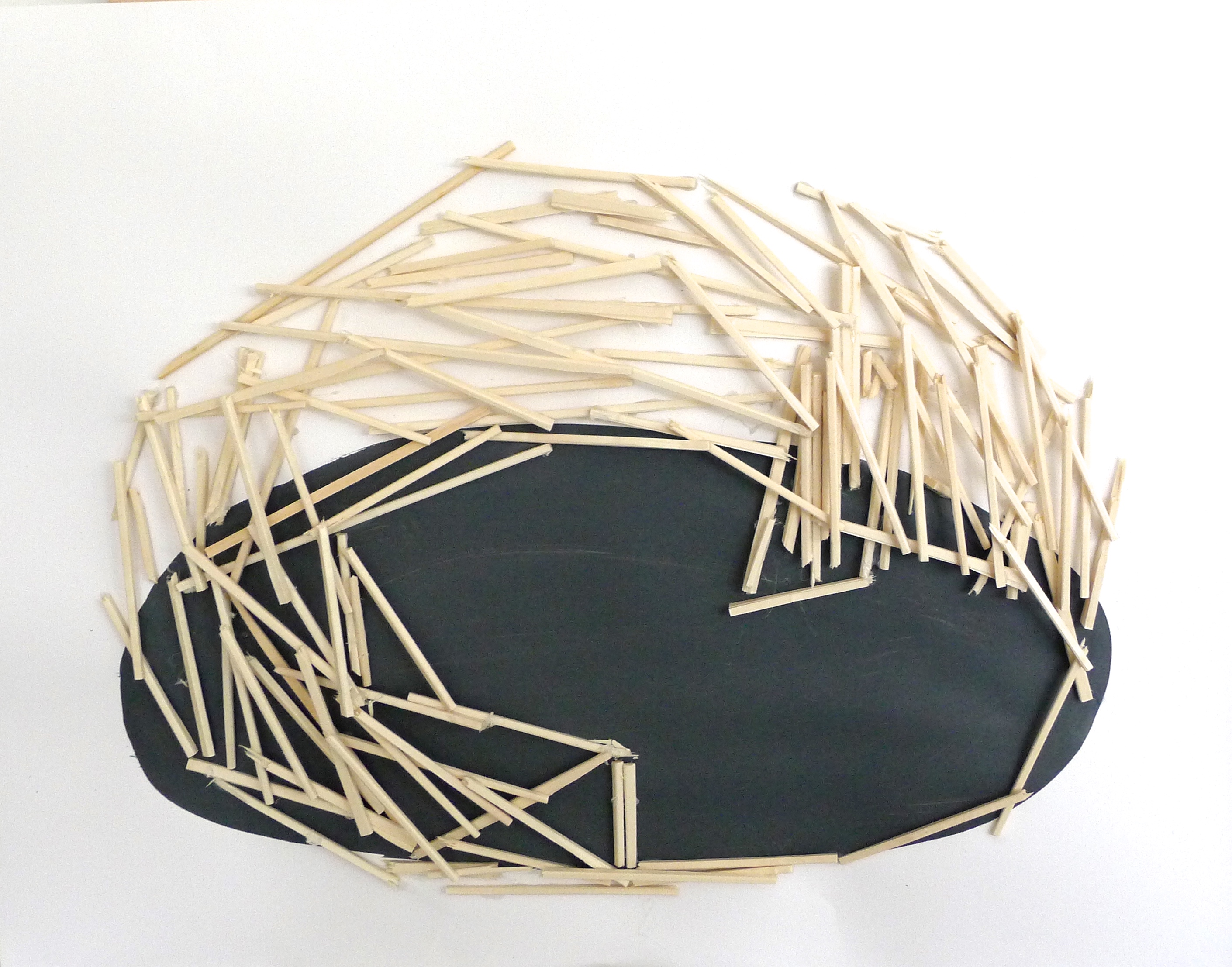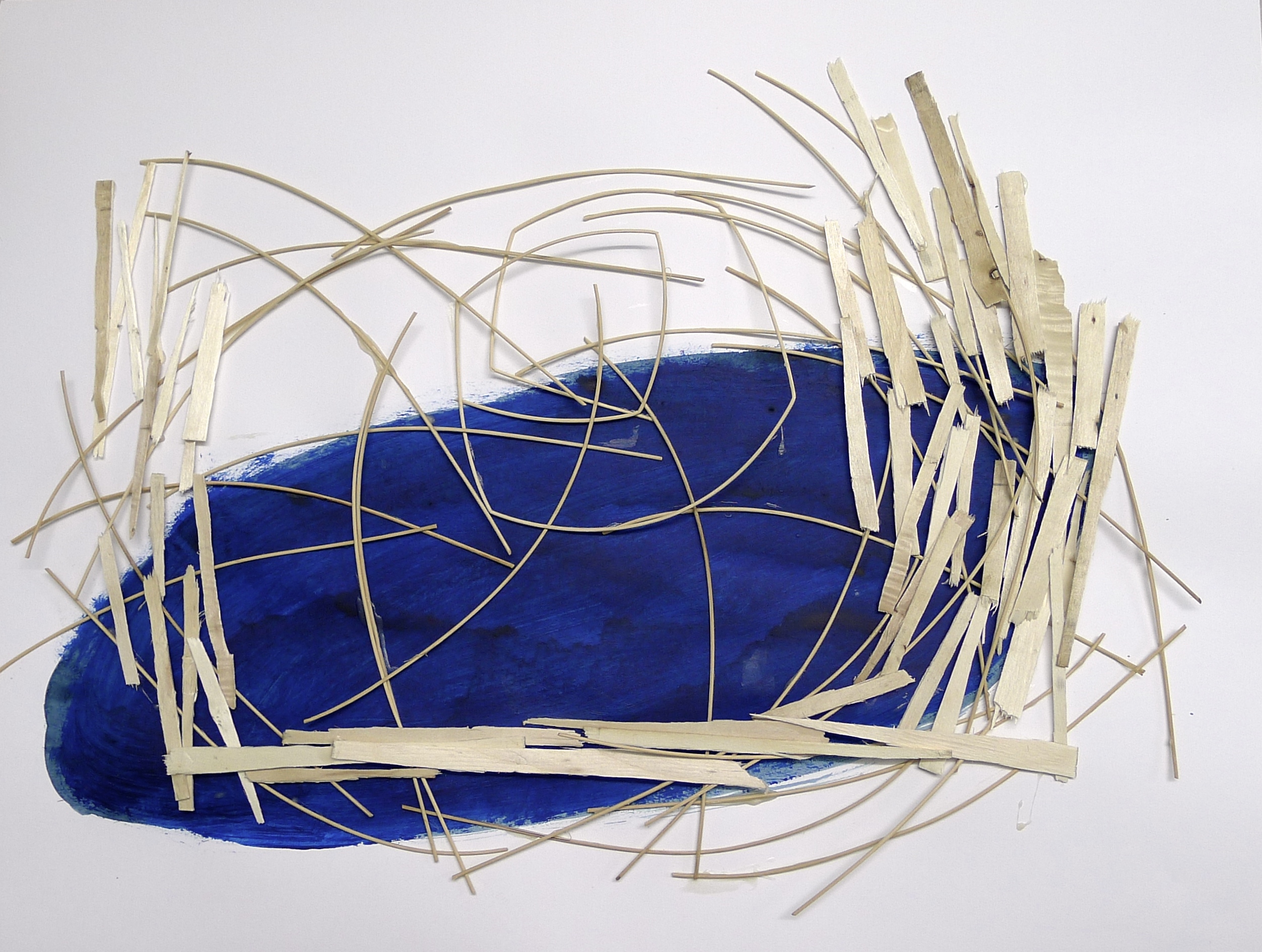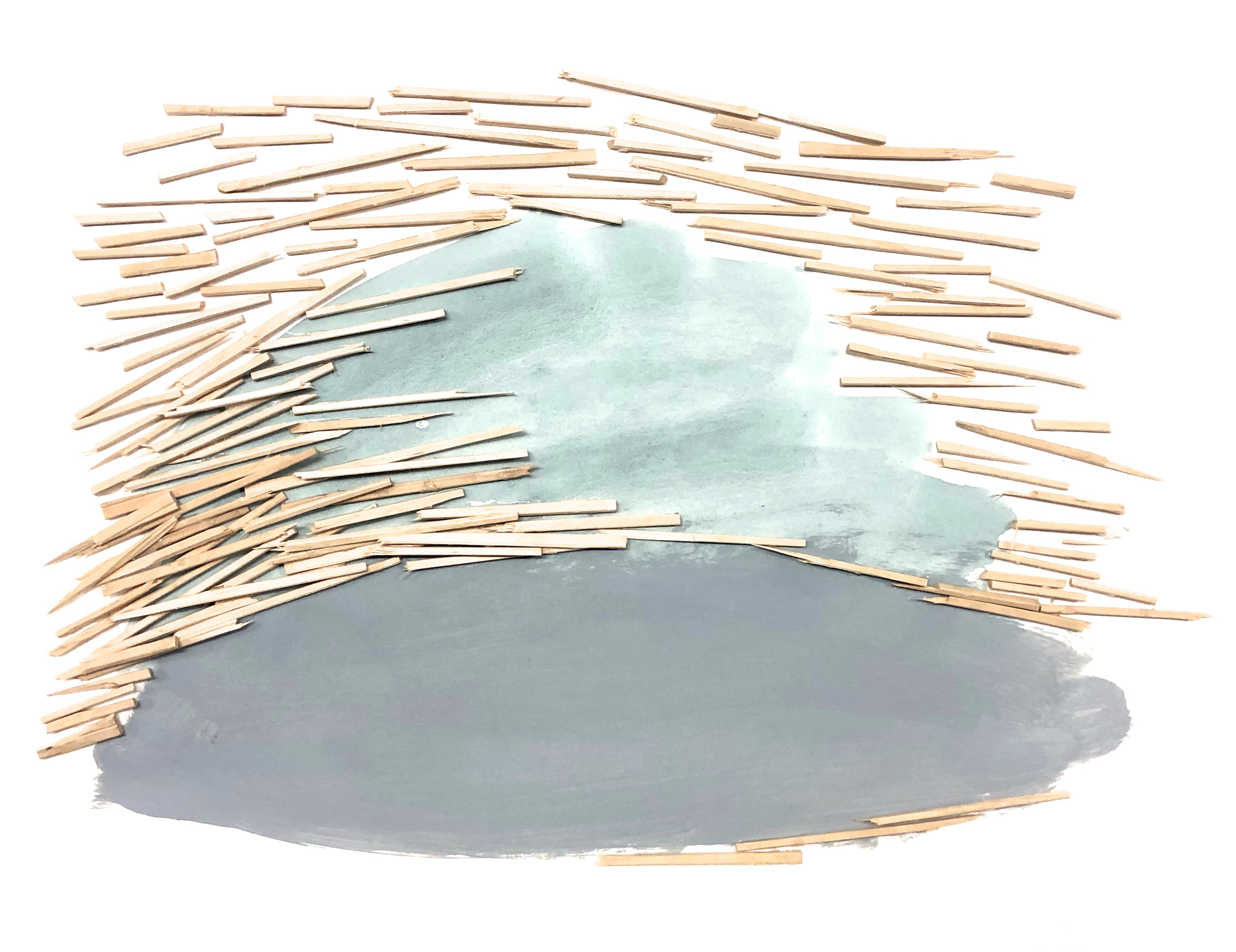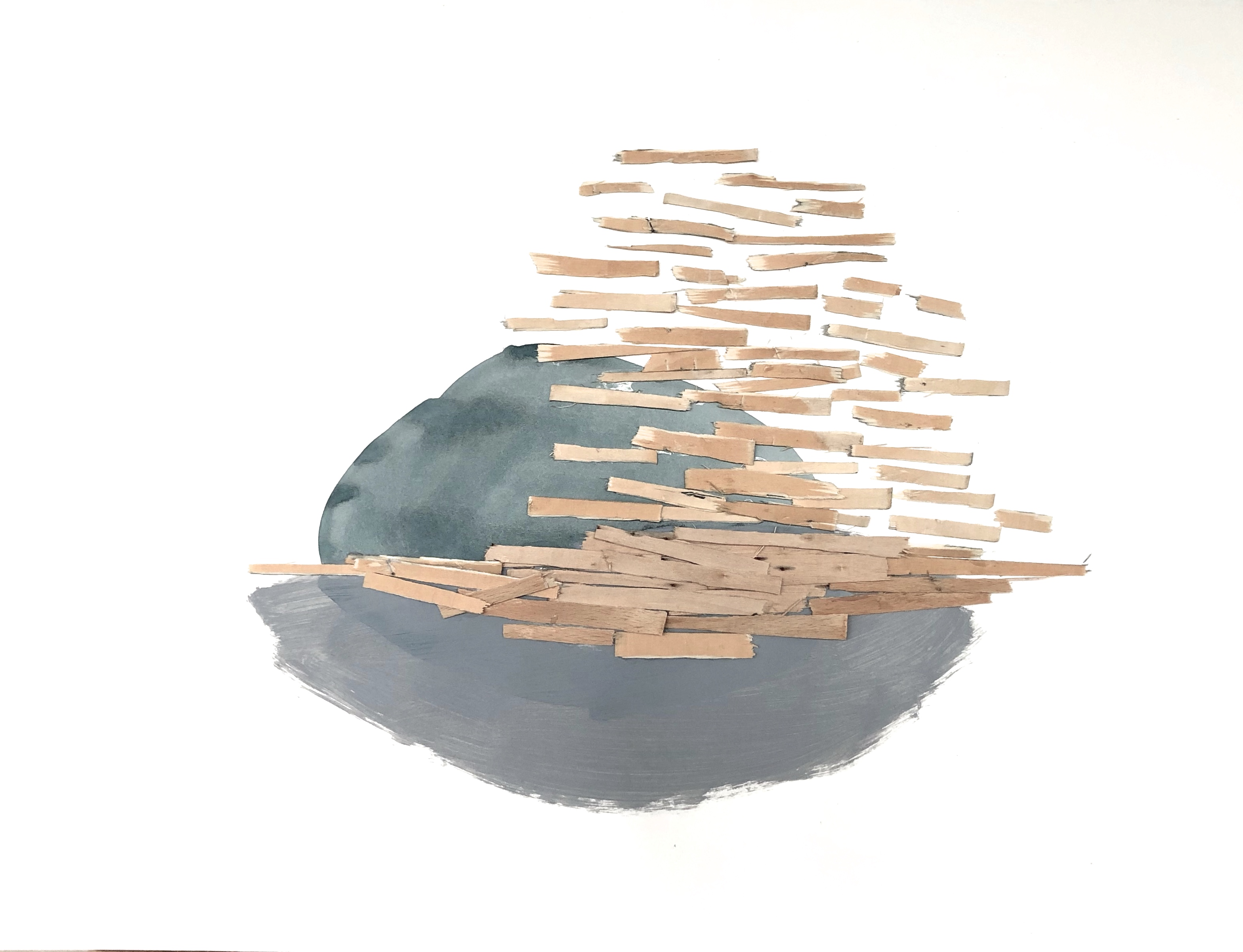 “The moment that triggered my series of Site Sketches was putting some leftover acrylic paint on a white sheet of paper while I was working on maquettes in my atelier. One day I began placing some wooden offcuts onto that paper, following the paint marks. These wooden chips were also discarded material from my maquette-making. (…) In my outdoor projects I have to remain sensitive to issues like the conditions at specific locations, structural integrity, and the safety of the audience. The advantage of Site Sketches is that I can disregard all of these things and develop freely on the paper, and the use of colors and materials gives rise to coincidental combinations. It is as though I am increasing the stock of my imagination. And they can also function as experimental spaces to see what and how I can build up through coincidence.”