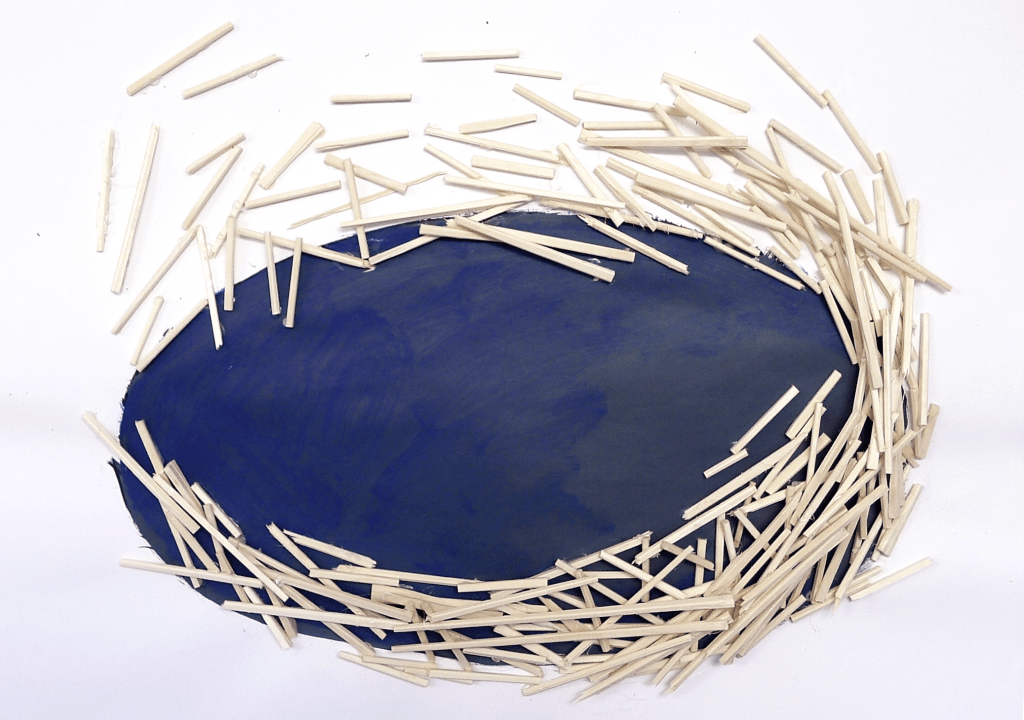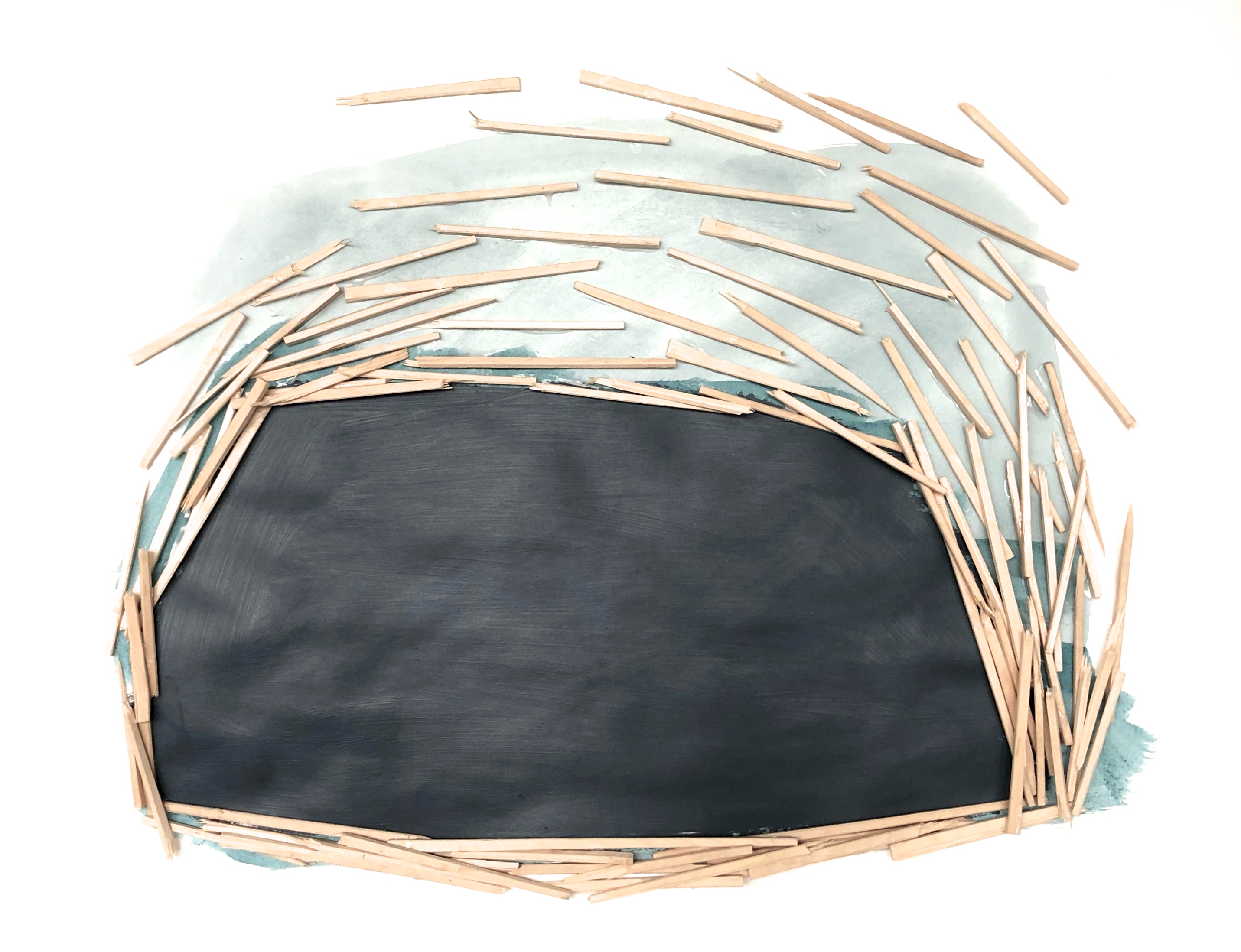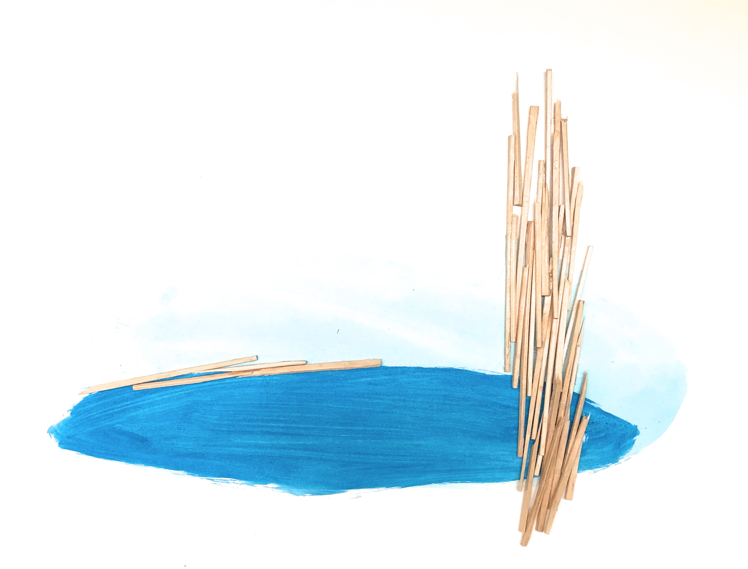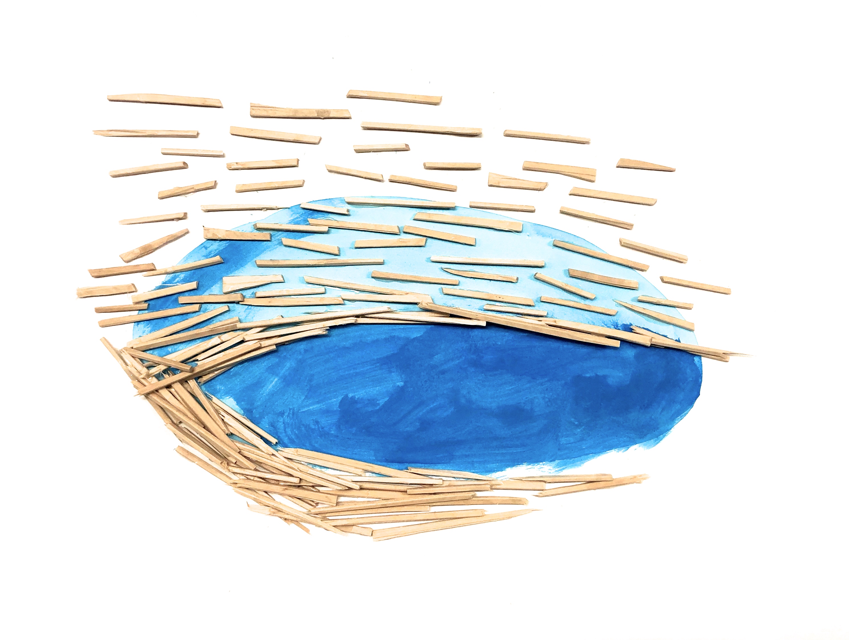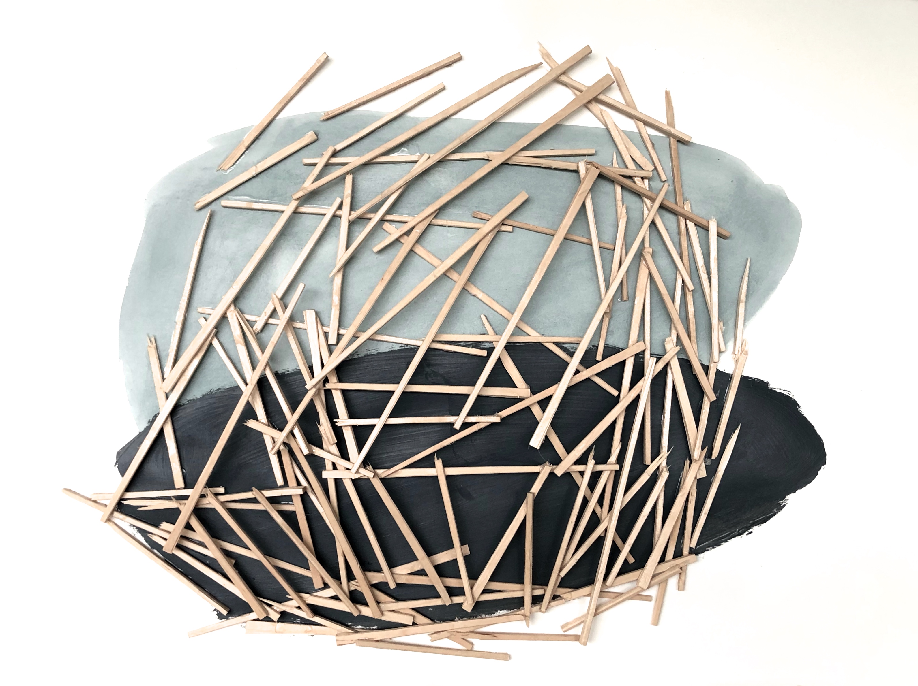“The moment that triggered my series of Site Sketches was putting some leftover acrylic paint on a white sheet of paper while I was working on maquettes in my atelier. One day I began placing some wooden offcuts onto that paper, following the paint marks. These wooden chips were also discarded material from my maquette-making. (…) In my outdoor projects I have to remain sensitive to issues like the conditions at specific locations, structural integrity, and the safety of the audience. The advantage of Site Sketches is that I can disregard all of these things and develop freely on the paper, and the use of colors and materials gives rise to coincidental combinations. It is as though I am increasing the stock of my imagination. And they can also function as experimental spaces to see what and how I can build up through coincidence.”