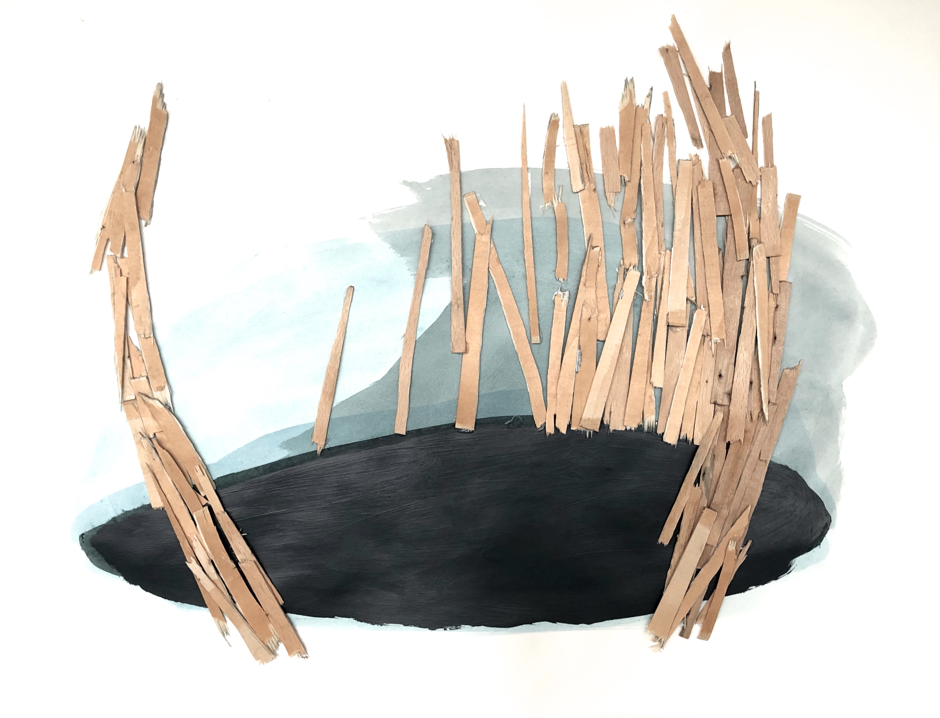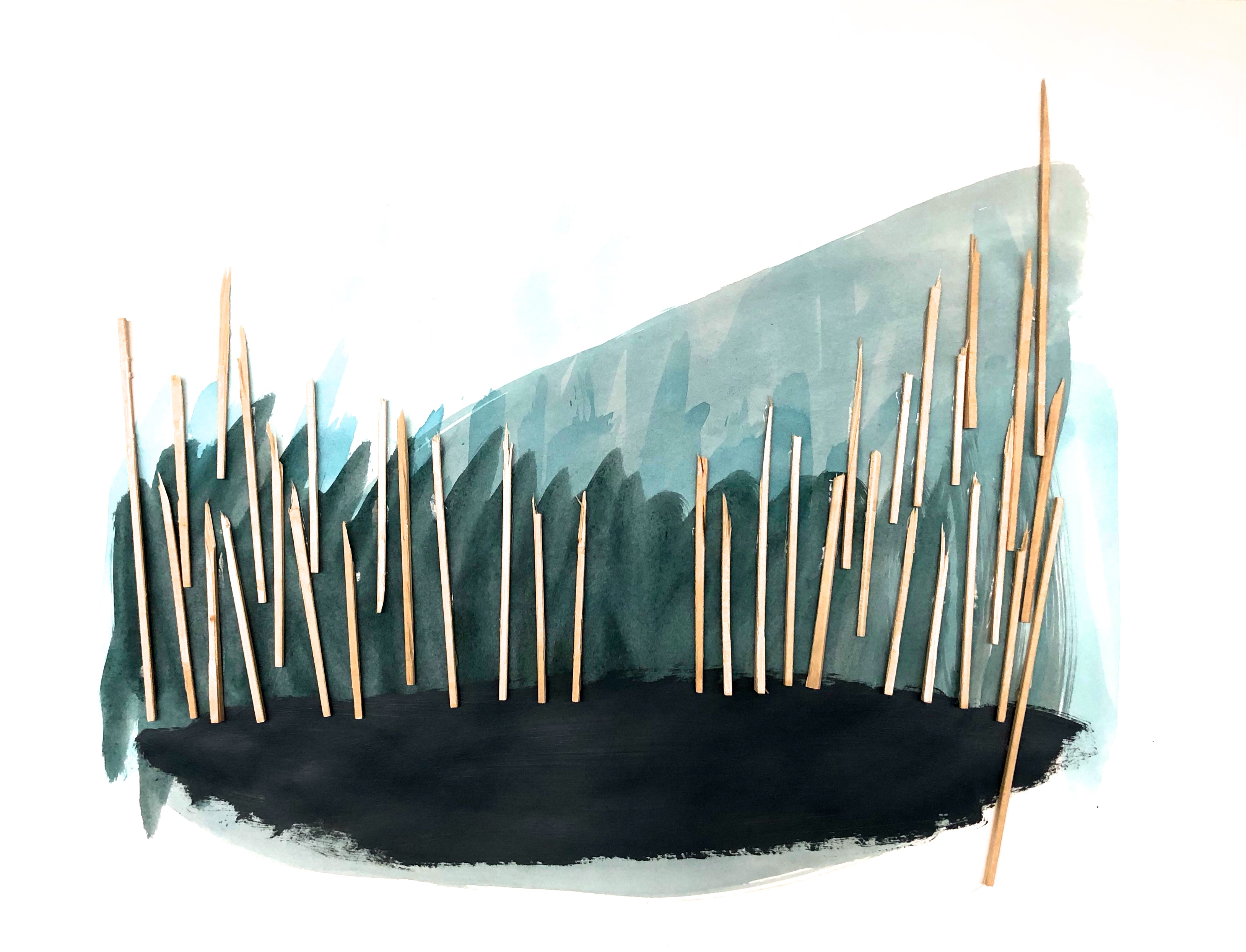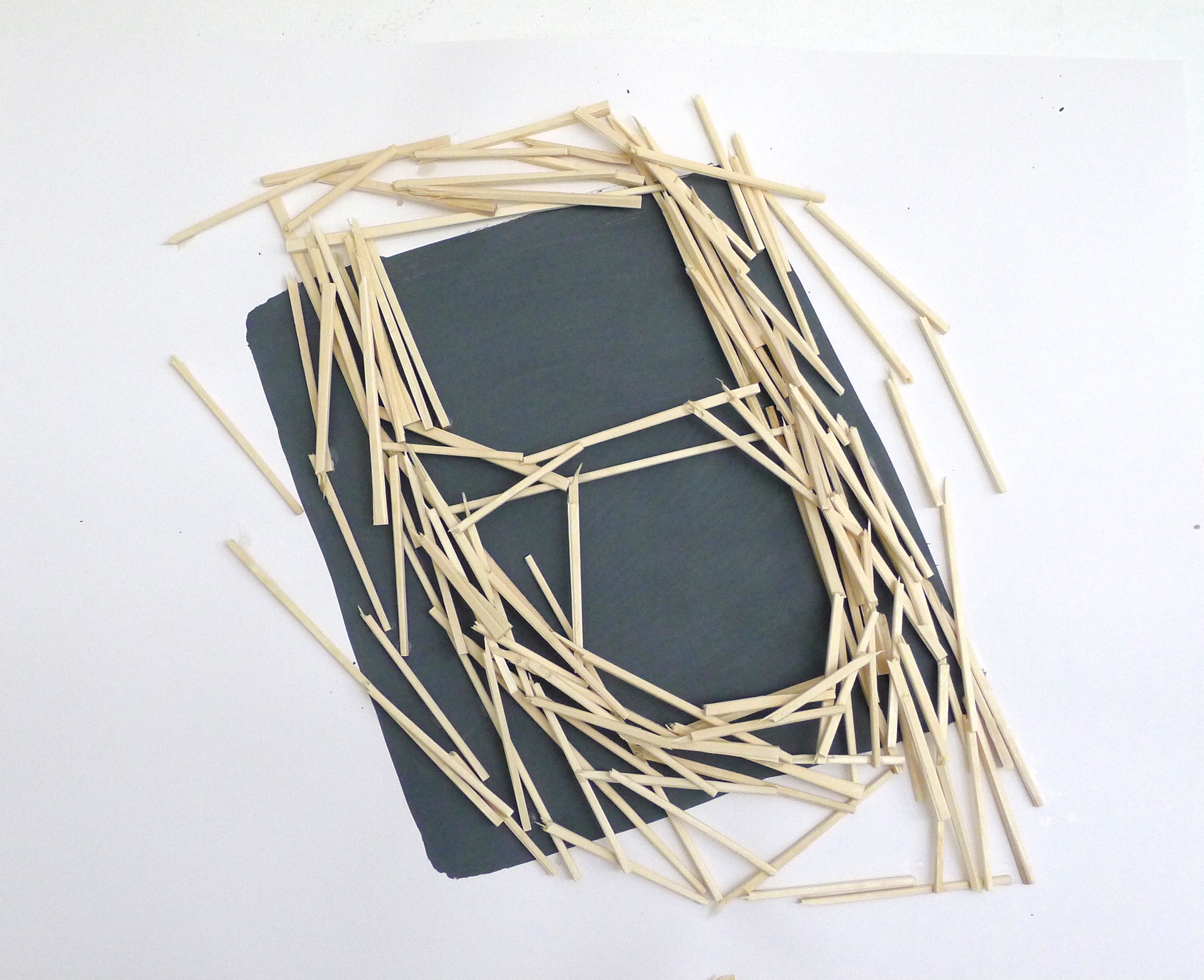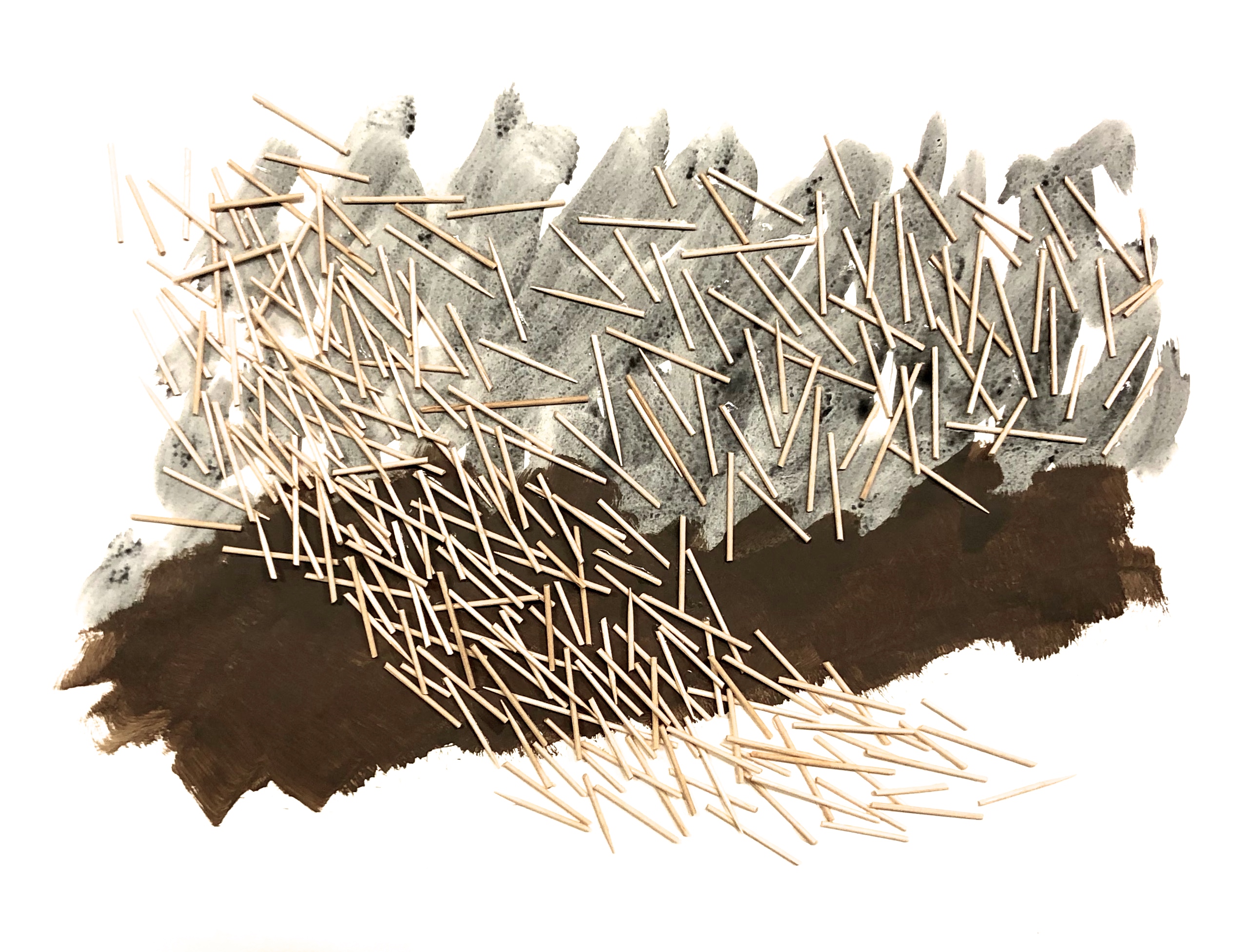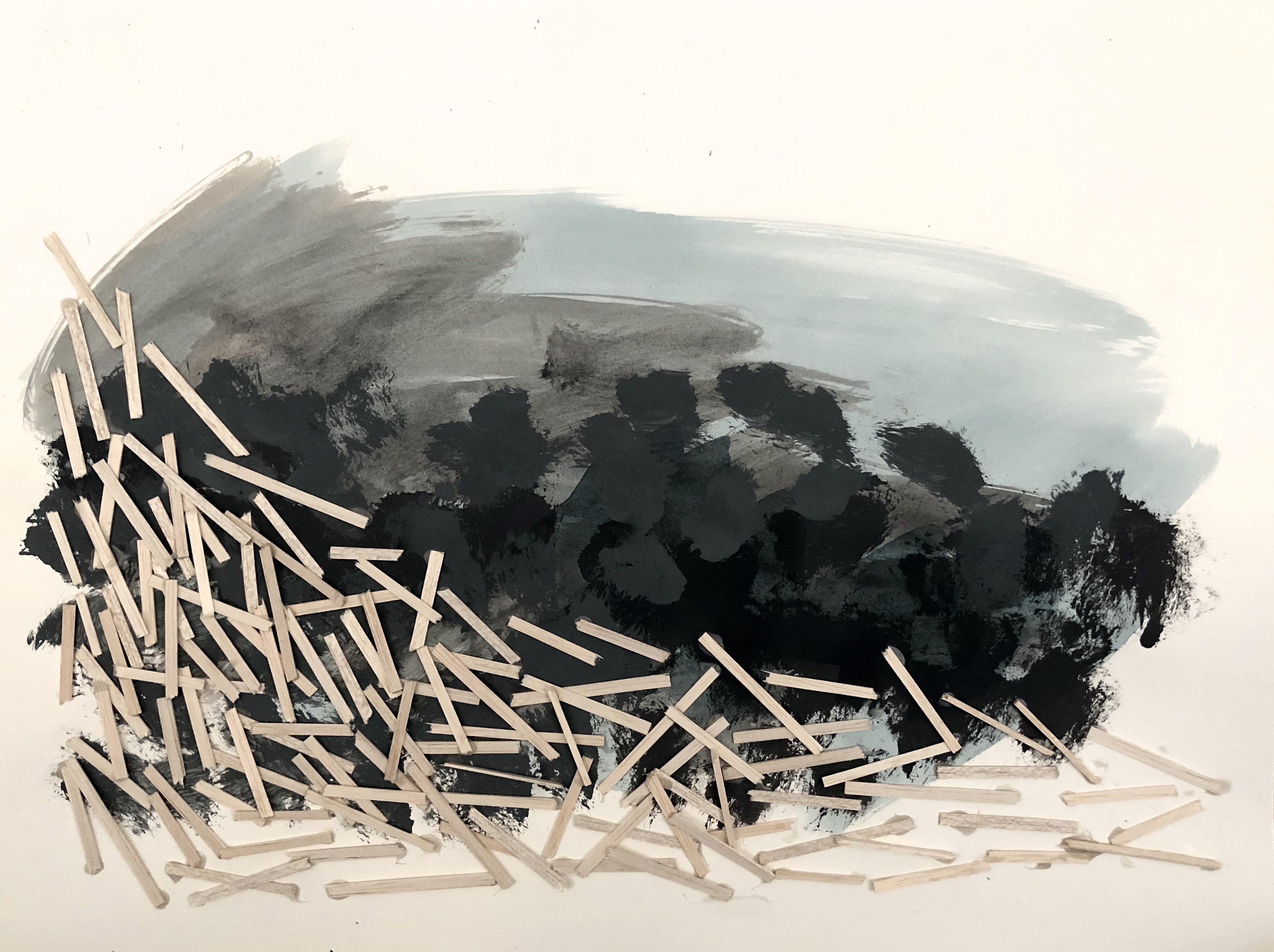 “The moment that triggered my series of Site Sketches was putting some leftover acrylic paint on a white sheet of paper while I was working on maquettes in my atelier. One day I began placing some wooden offcuts onto that paper, following the paint marks. These wooden chips were also discarded material from my maquette-making. (…) In my outdoor projects I have to remain sensitive to issues like the conditions at specific locations, structural integrity, and the safety of the audience. The advantage of Site Sketches is that I can disregard all of these things and develop freely on the paper, and the use of colors and materials gives rise to coincidental combinations. It is as though I am increasing the stock of my imagination. And they can also function as experimental spaces to see what and how I can build up through coincidence.”