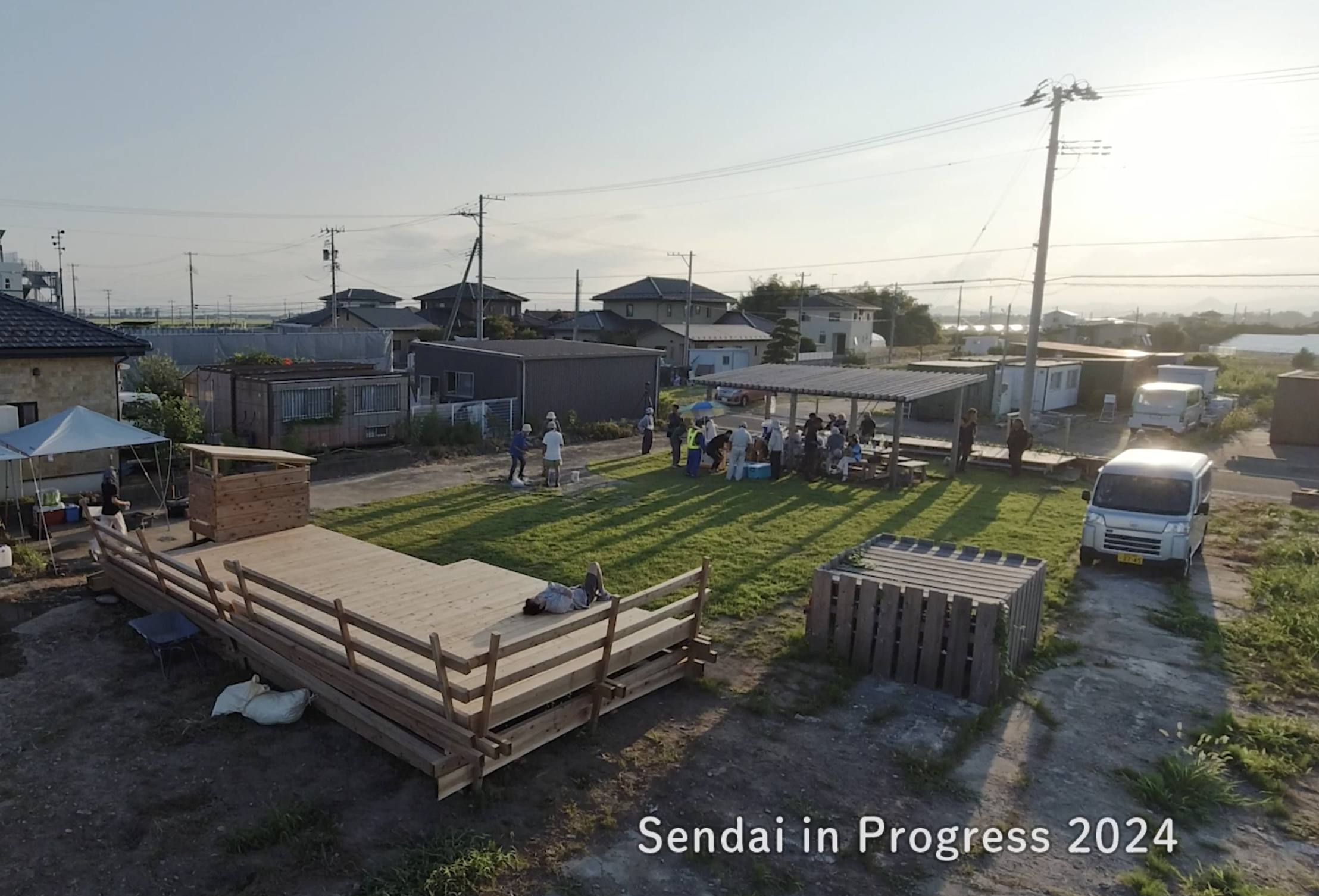 The project for Sendai in Progress 2024 consisted in building a terrace at the site of the Idohama Pergola for local residents and visitors to relax, spend time, and engage in various activities. Flower beds were also added along the roadside terrace.