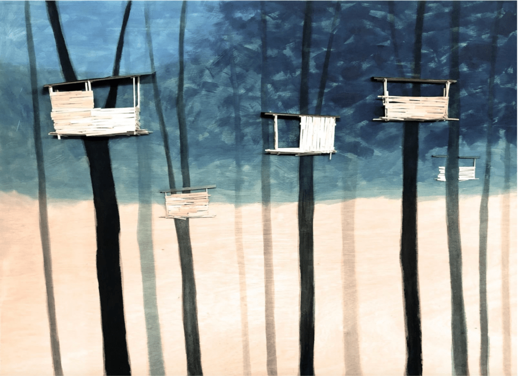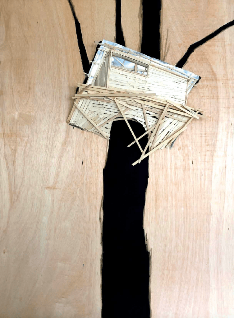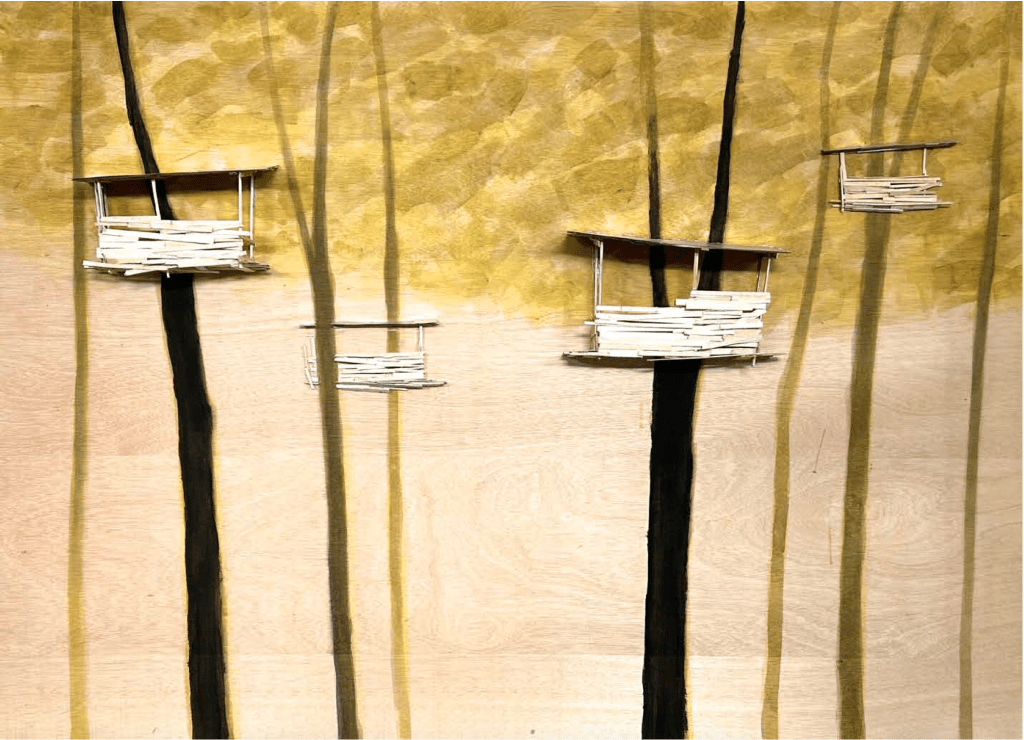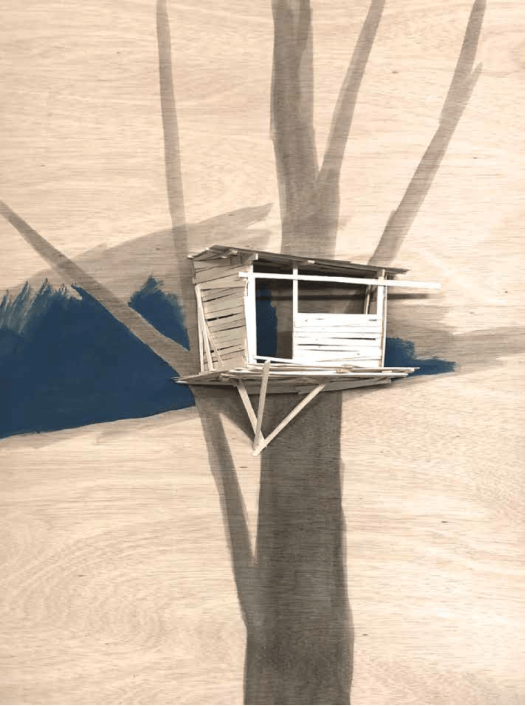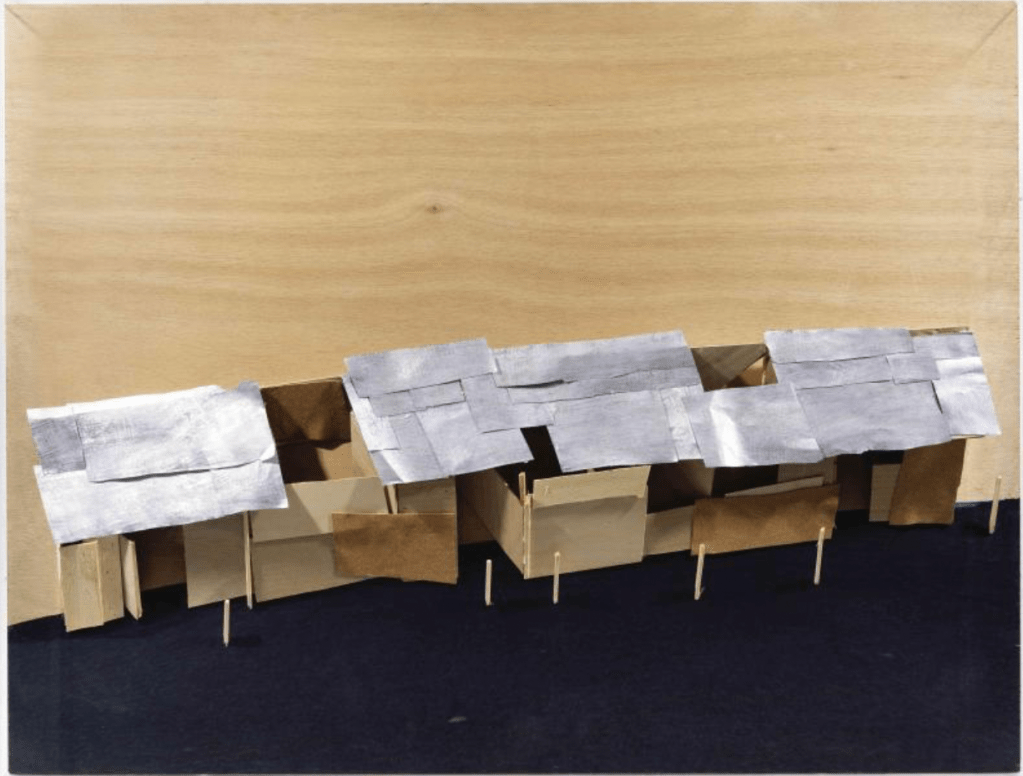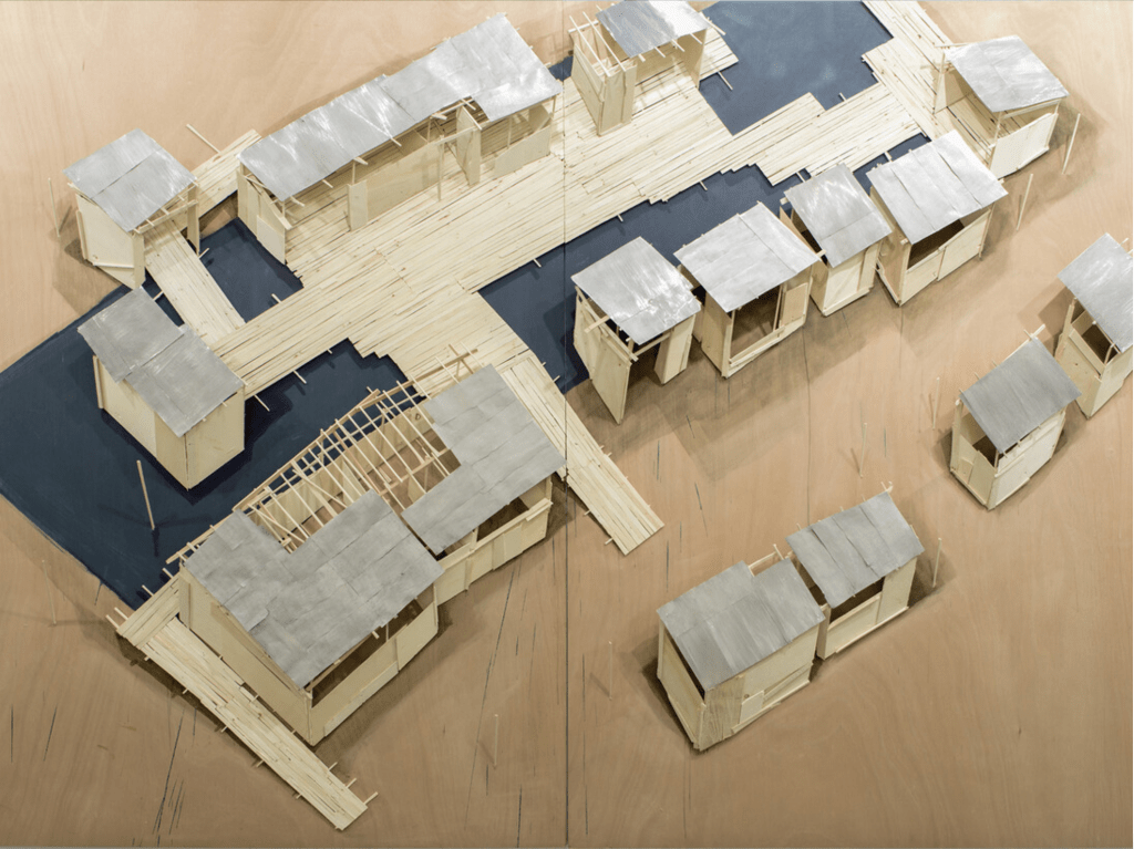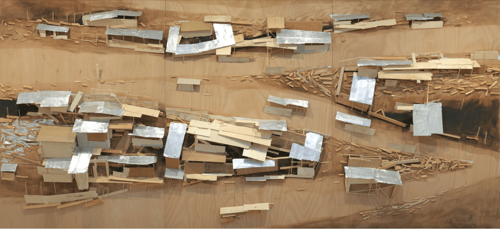 While not all maquettes belong to a specific project or defined series, several recurring themes run through Kawamata’s production, ranging from – though not exhaustively — Favela, Tsunami, Destruction, Tree Hut, and Tsumari, to the more abstract and recent Landscape works.